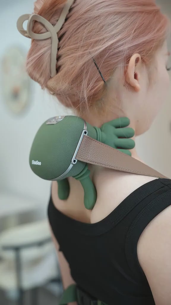 A compact massage shawl that sits on the shoulders and uses 4D massage heads to deeply knead and press different points on the neck and trapezius muscles.